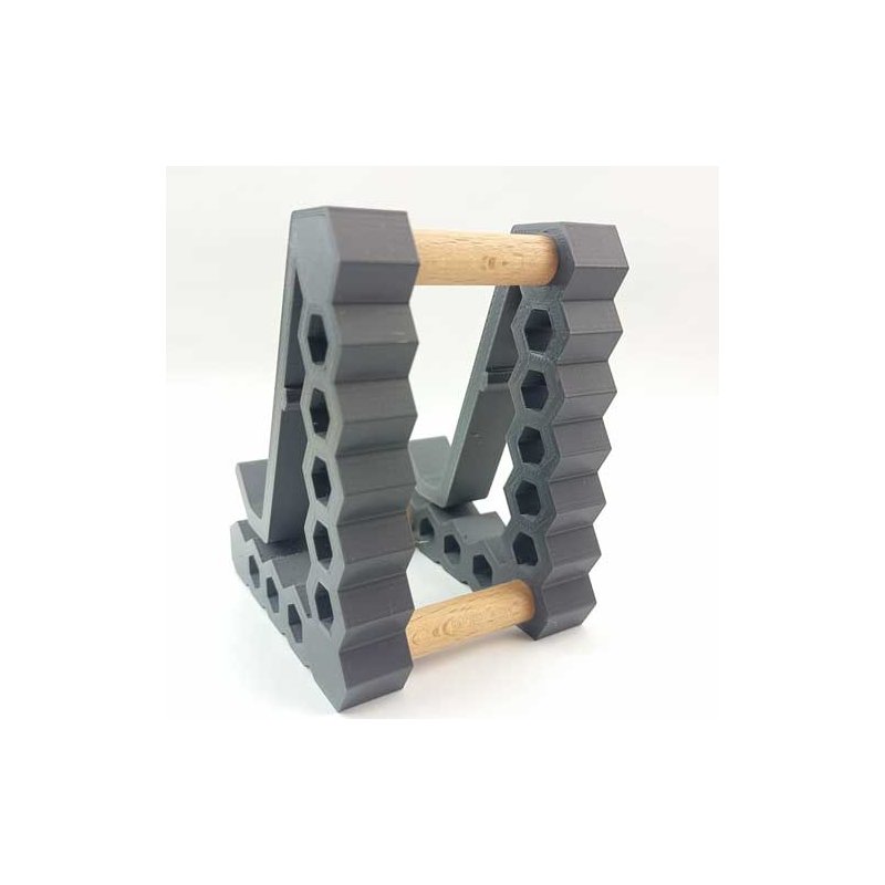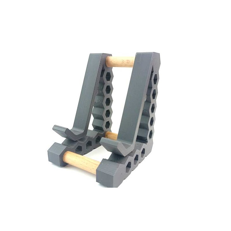 Preprost in eleganten namizni podstavek - šestkot za mobilni telefon izdelan iz kombinacije PLA in lesa. Ustreza za večino mobilnih telefonov. Siva barva.