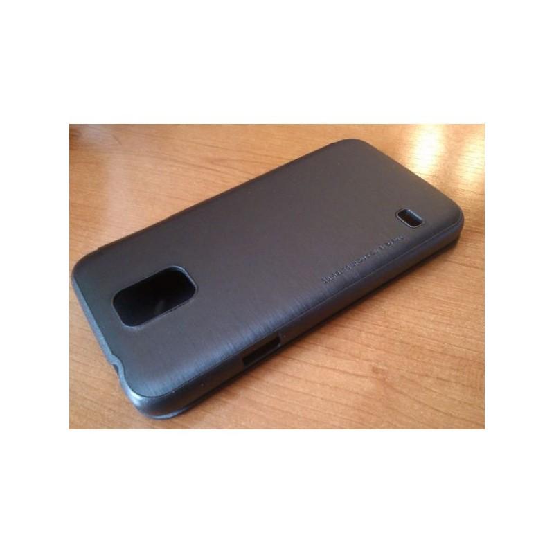 Flip Case za Samsung Galaxy S5.Uporaba dvojnega materiala ustvari neverjetno mešanico tekstur in estetike - sintetičnega usnja za prednji flip/(svilena tekstura) in polikarbonata za zadnjo lupino . Črna barva.+Priložena folija ekrana.