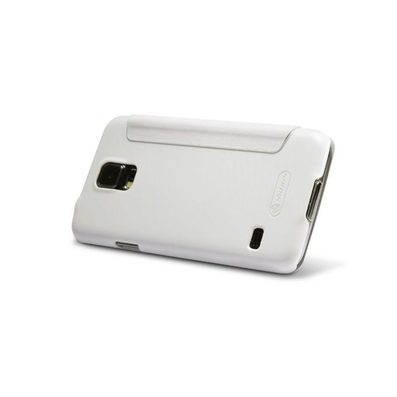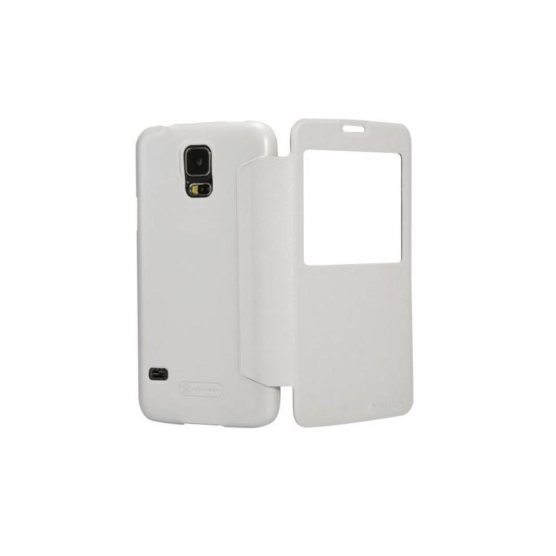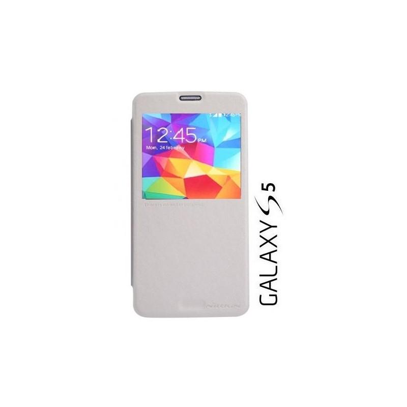 Preklopna elegantna torbica za Galaxy S5 , Bela barva,Display View.(Pregled na zaslon) Brez odpiranja odgovorjate na klice , preverite čas, fotoaparat in druge funkcije zaščita- priročno in praktično.