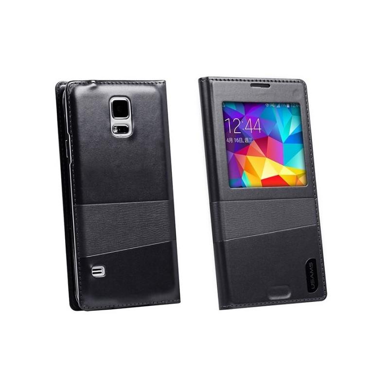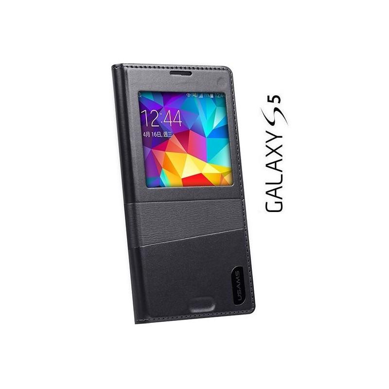 Torbica za Galaxy S5,Narejena iz visoko kakovostnega PU usnja (Sintetično usnje), odlične izdelave , stilsko in elegantno obliko.View window design-pogled na stanje.Sleep Mode Funkcija. Barva: Črna