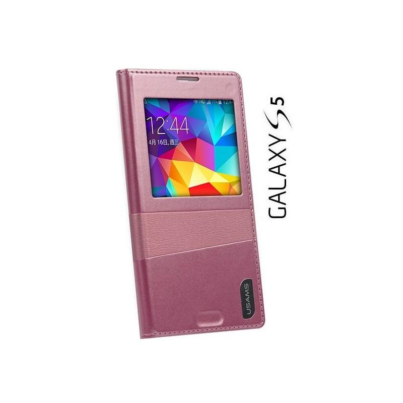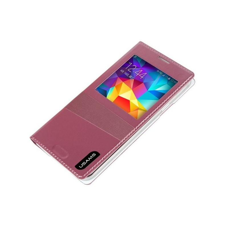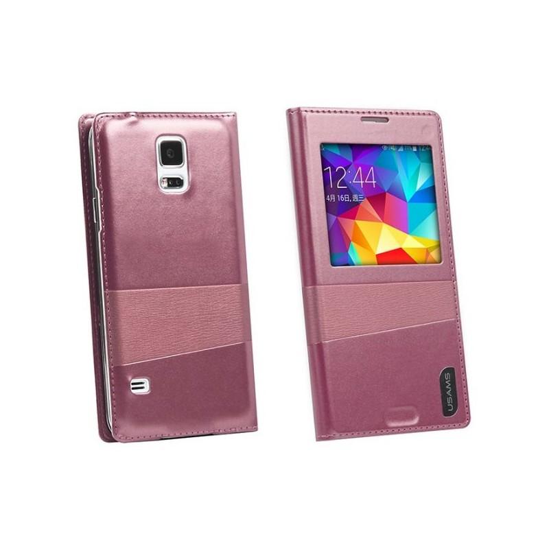 Torbica za Galaxy S5,Narejena iz visoko kakovostnega PU usnja (Sintetično usnje), odlične izdelave , stilsko in elegantno obliko.View window design-pogled na stanje.Sleep Mode Funkcija. Barva: Pink.