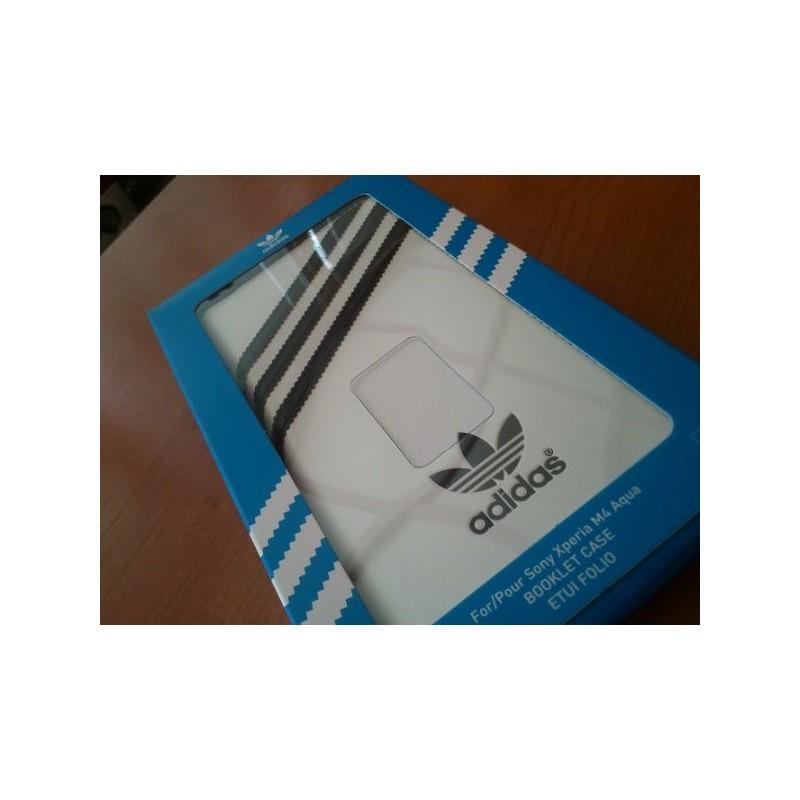 Xperia M4 Aqua adidas preklopni etui je izdelan natančno s prilegajočo zadnjo mehko na dotik lupino z zaščitno notranjo oblogo. Sprednji in zadnji del so oblikovani in izdelani iz trpežnega PU materiala s progami "adidas" in Original logotipom. Znotraj sprednjega pokrova je mehka notranja obloga,potiskana z logotipom adidas in nudi zaščito zaslona.